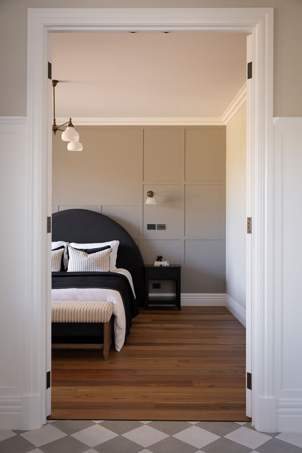 Casa Laurel is an elegant provincial-style residence in Trentham, thoughtfully crafted to honour the timeless charm of Federation architecture. Step inside to discover exquisite craftsmanship at every turn—arched entryways, refined wall panelling, and striking harlequin tiling create a sense of enduring beauty and sophistication.