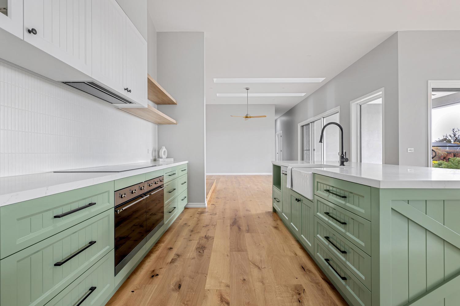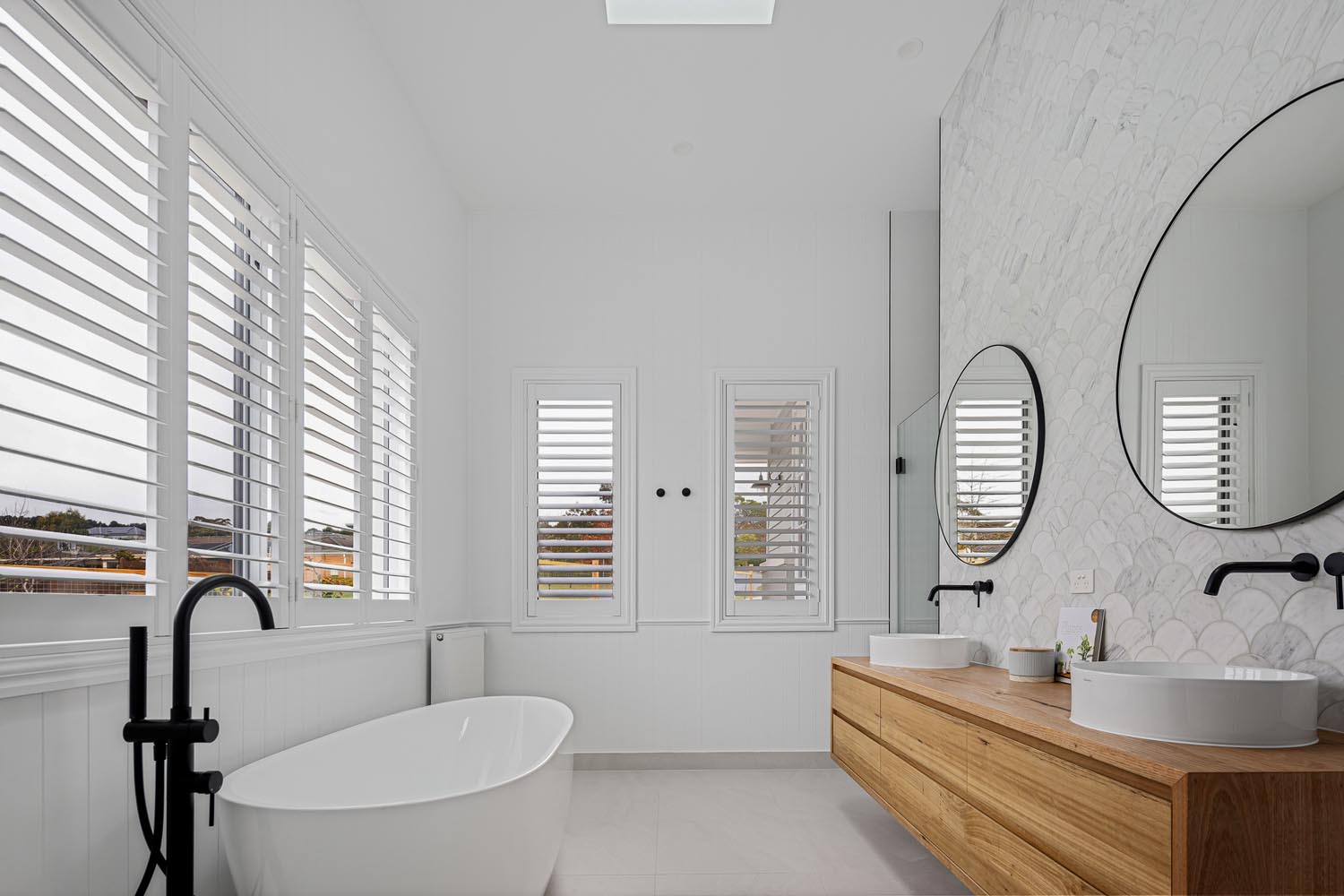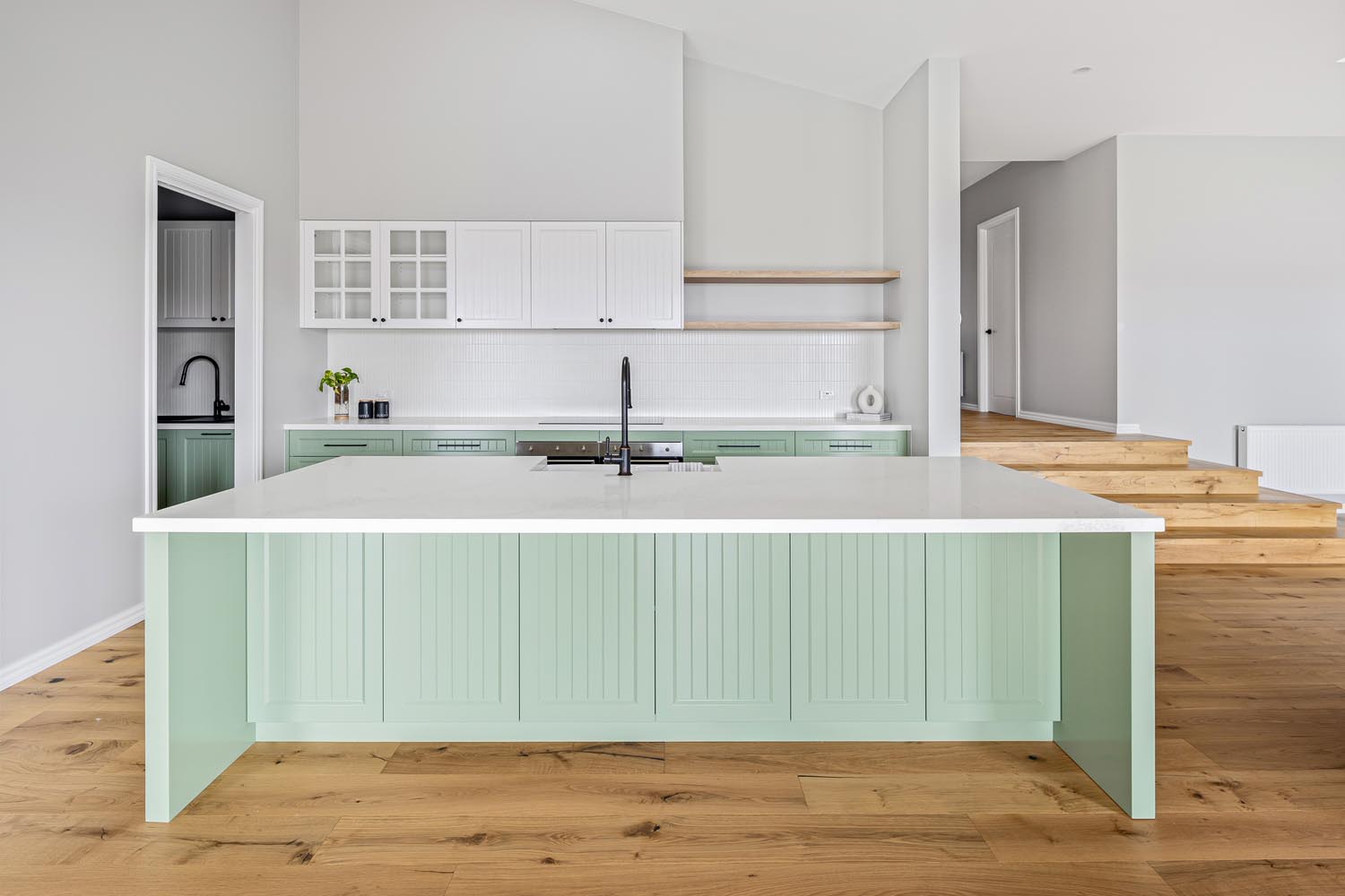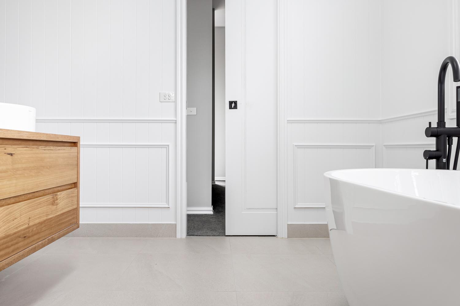 Collis is a standing definition of ‘Hamptons Style’. It boasts a split-level floorplan, high ceilings, soft stone cladding features, sage shaker-style cabinetry, large sky-light windows and timber vanities. The wet areas are among the show-stopping features of the home with a mixture of fan tiles, penny-rounds, Moroccan and herringbone tiling. Wainscoting has been used to create texture and depth around the freestanding baths and VJ panelling brings character to the high walls. Engineered Oak flooring, travertine tiles, plantation shutters and pendant lighting are just some of the additional elements of this stunning home.