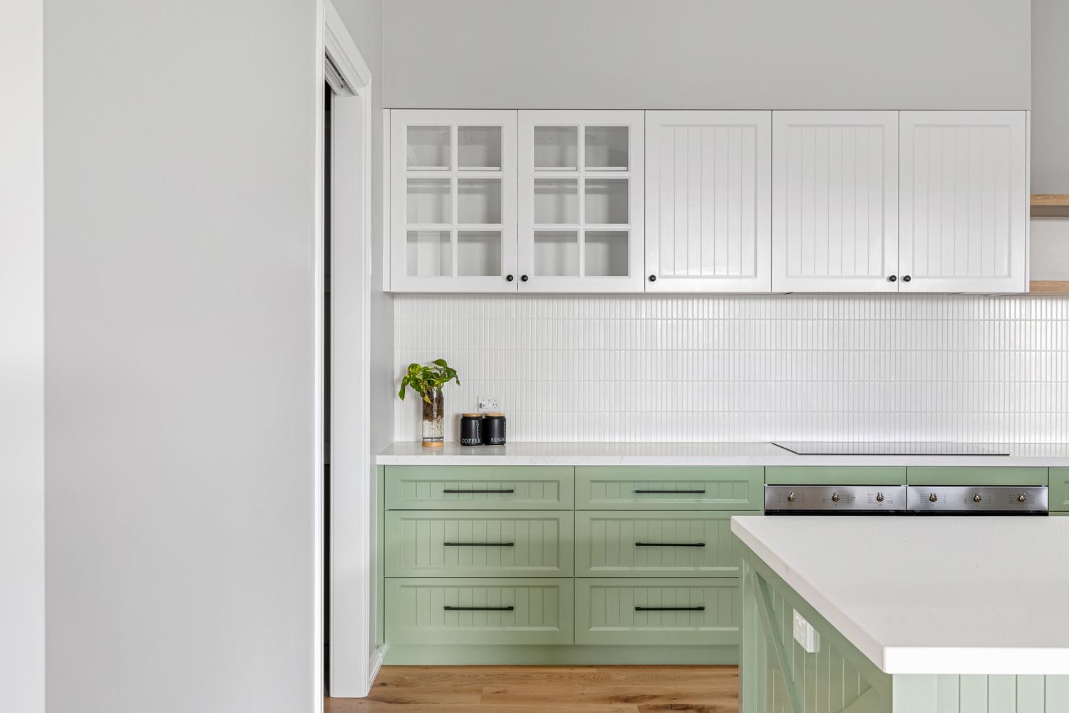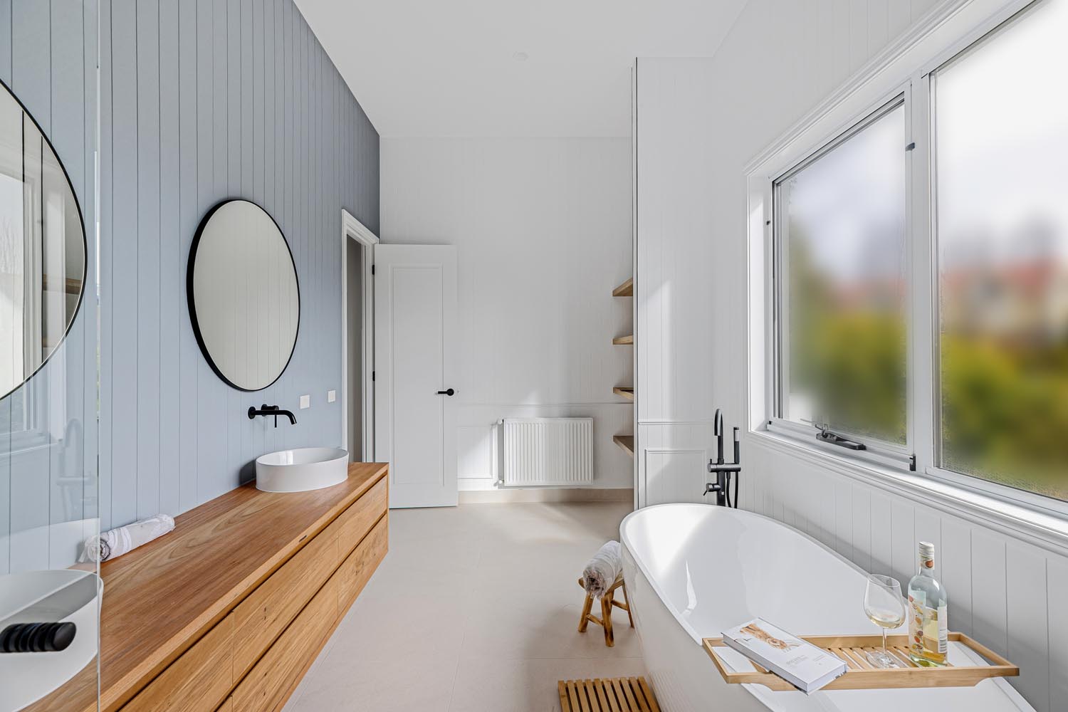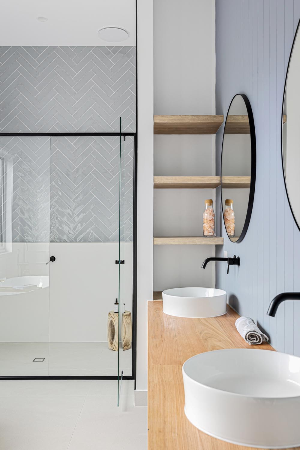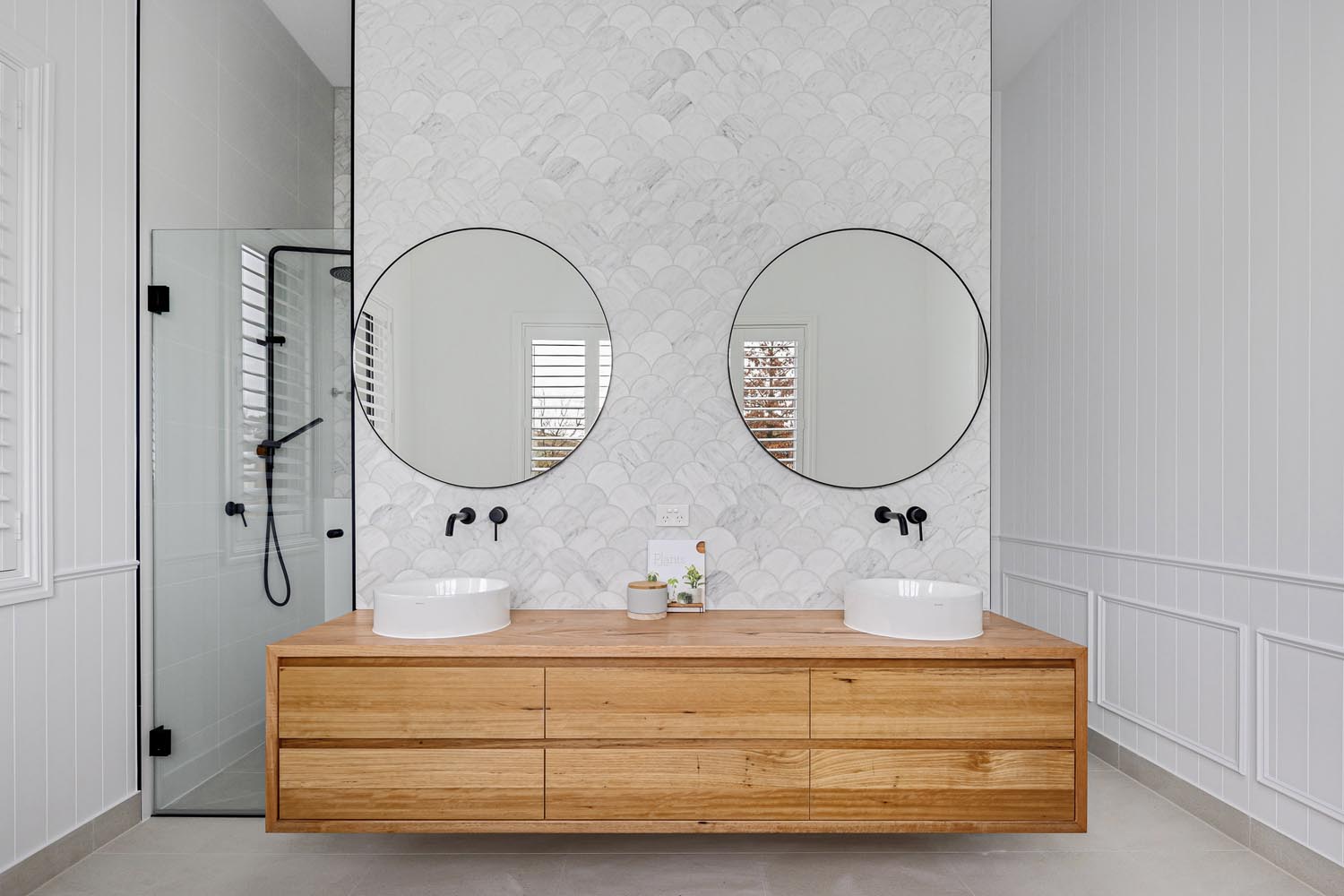 Collis is a standing definition of ‘Hamptons Style’. It boasts a split-level floorplan, high ceilings, soft stone cladding features, sage shaker-style cabinetry, large sky-light windows and timber vanities. The wet areas are among the show-stopping features of the home with a mixture of fan tiles, penny-rounds, Moroccan and herringbone tiling. Wainscoting has been used to create texture and depth around the freestanding baths and VJ panelling brings character to the high walls. Engineered Oak flooring, travertine tiles, plantation shutters and pendant lighting are just some of the additional elements of this stunning home.