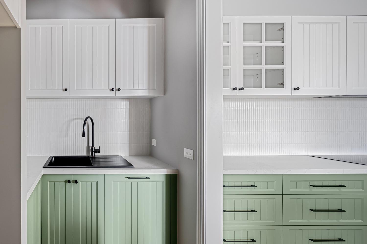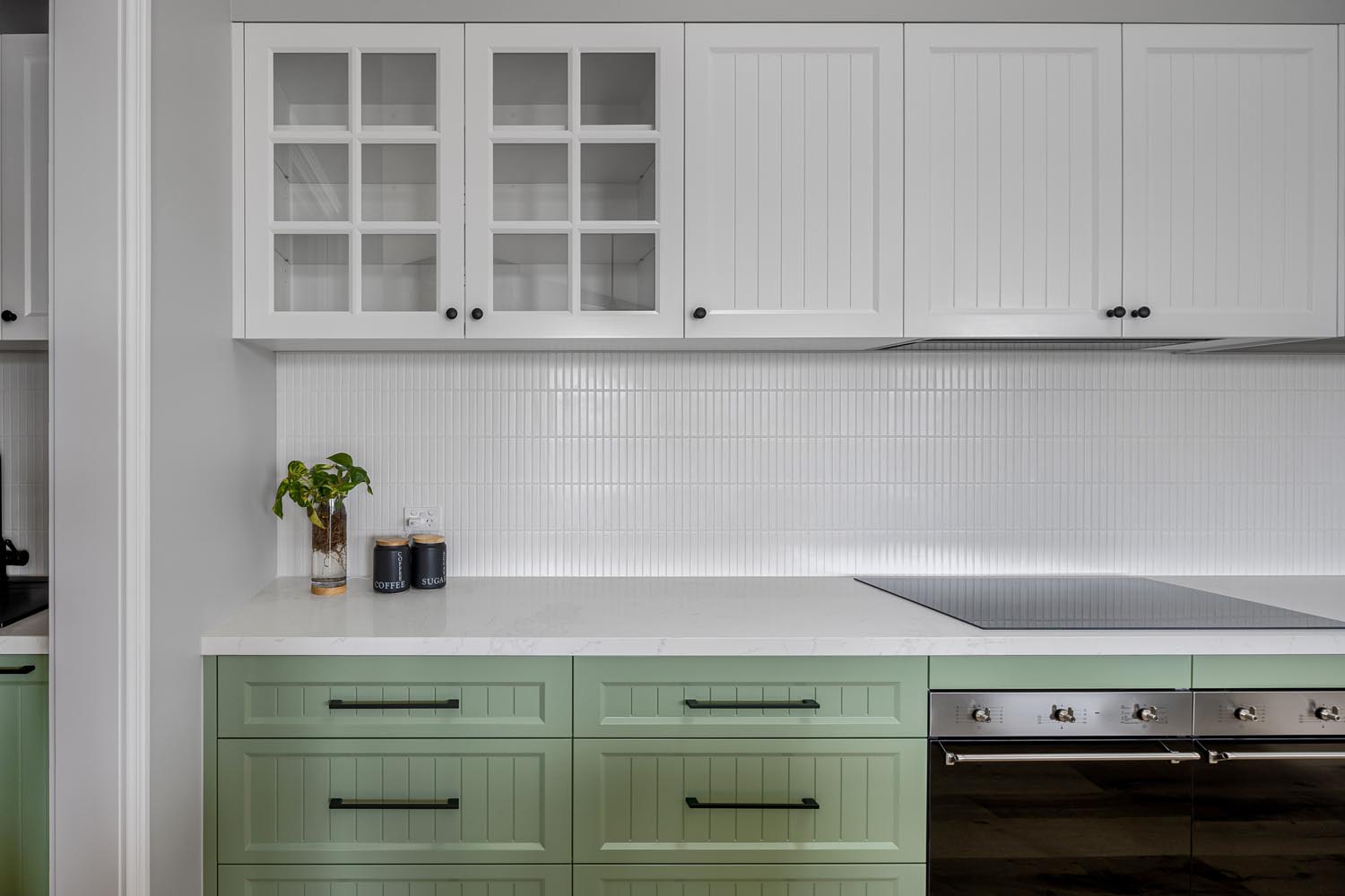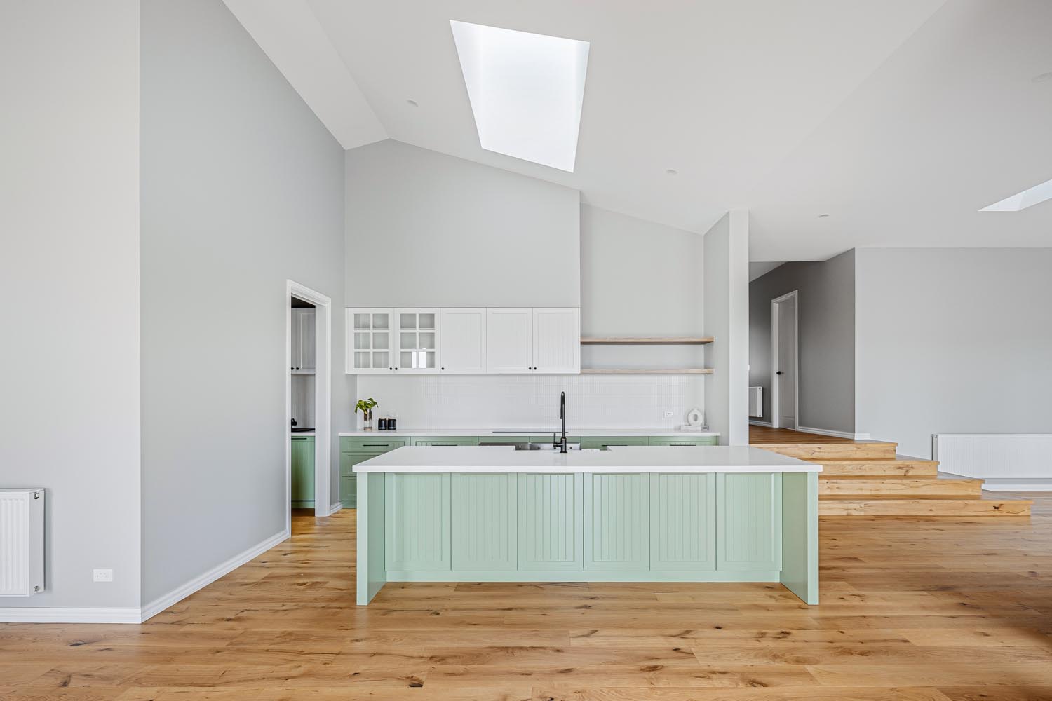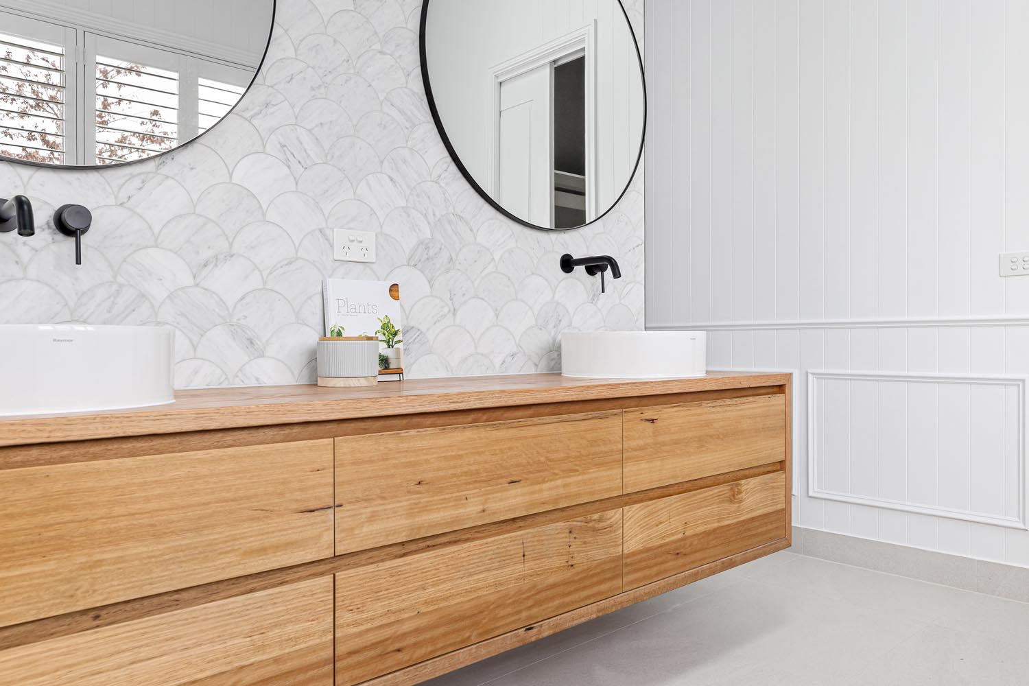 Collis is a standing definition of ‘Hamptons Style’. It boasts a split-level floorplan, high ceilings, soft stone cladding features, sage shaker-style cabinetry, large sky-light windows and timber vanities. The wet areas are among the show-stopping features of the home with a mixture of fan tiles, penny-rounds, Moroccan and herringbone tiling. Wainscoting has been used to create texture and depth around the freestanding baths and VJ panelling brings character to the high walls. Engineered Oak flooring, travertine tiles, plantation shutters and pendant lighting are just some of the additional elements of this stunning home.
