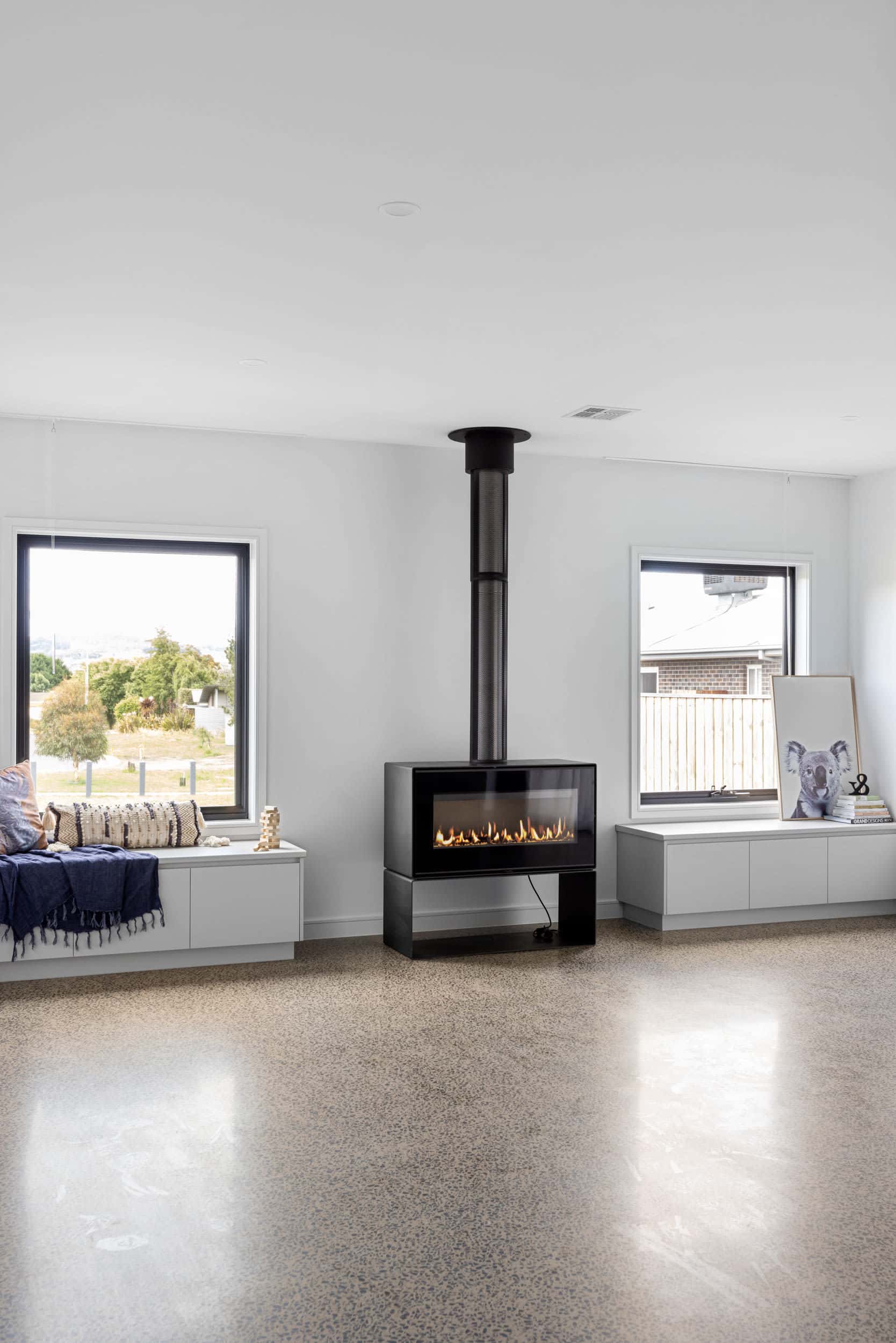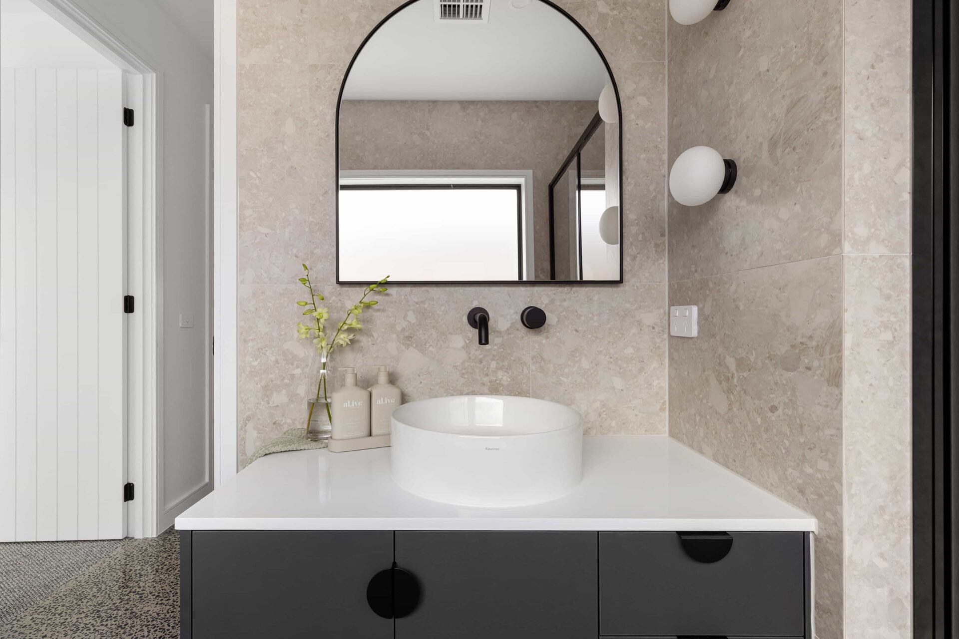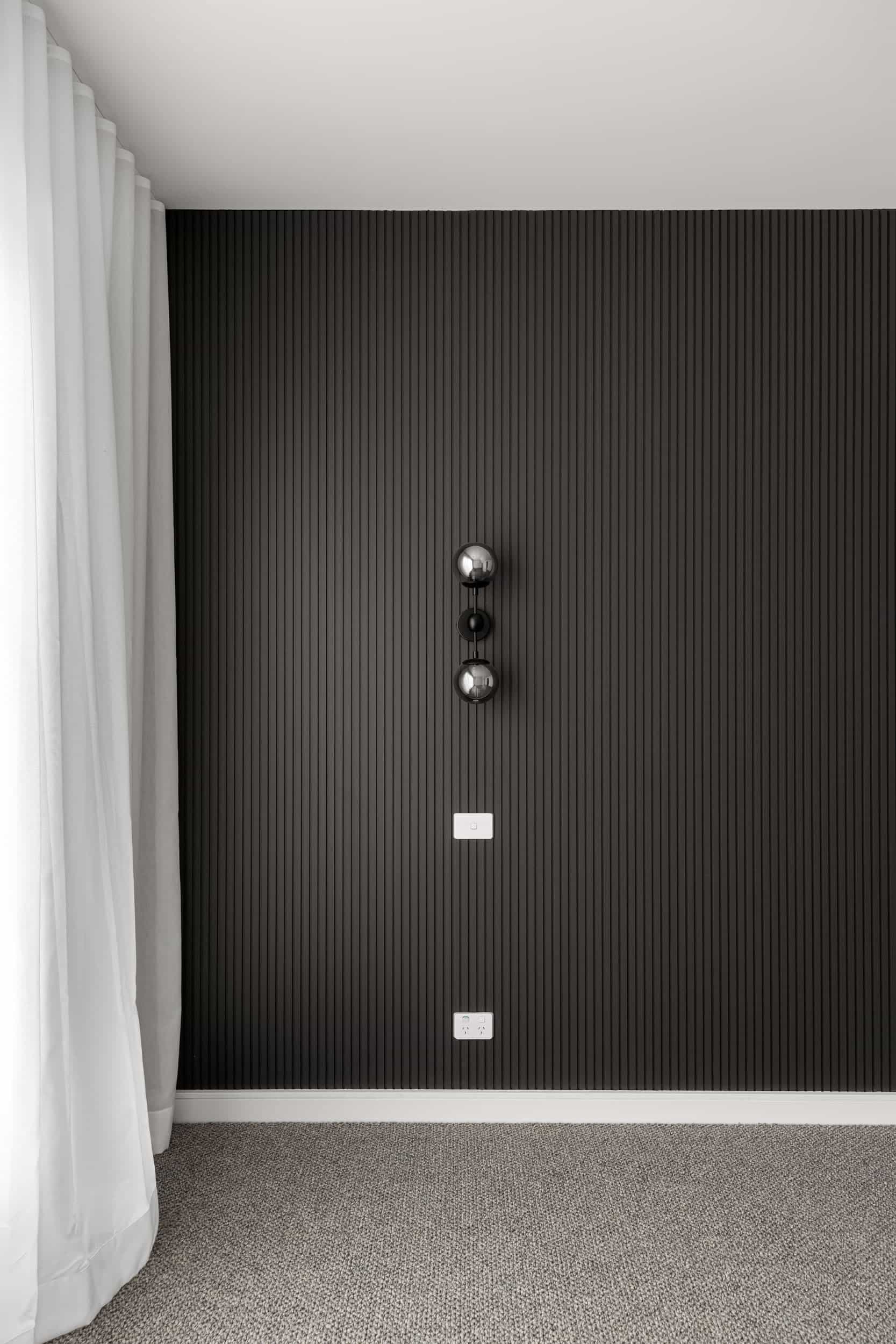 Our clever Havana clients never second-guessed their selections and were clear on their style from the beginning. They incorporated beautiful hues of grey and beige with some darker features throughout, including black tapware, a textured feature wall for the master bedroom and VJ panelling splashback to the powder room. Feature lighting starred as a hero in the design along with the impressive Taurus fireplace from Vision Line Australia.