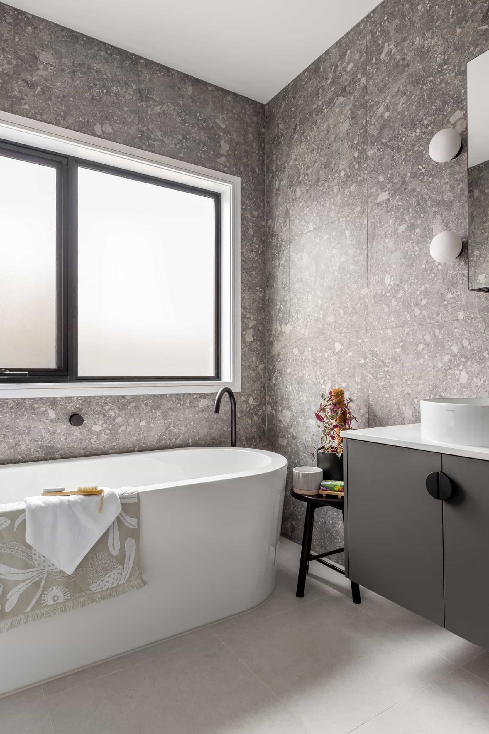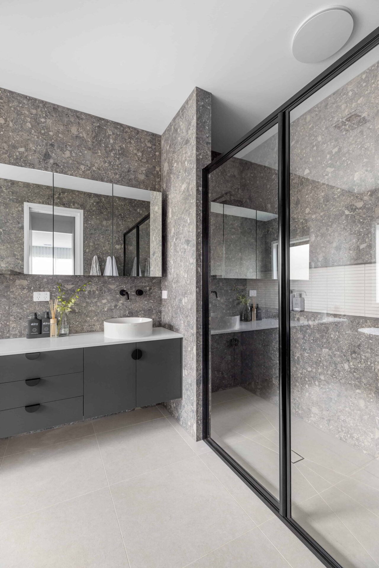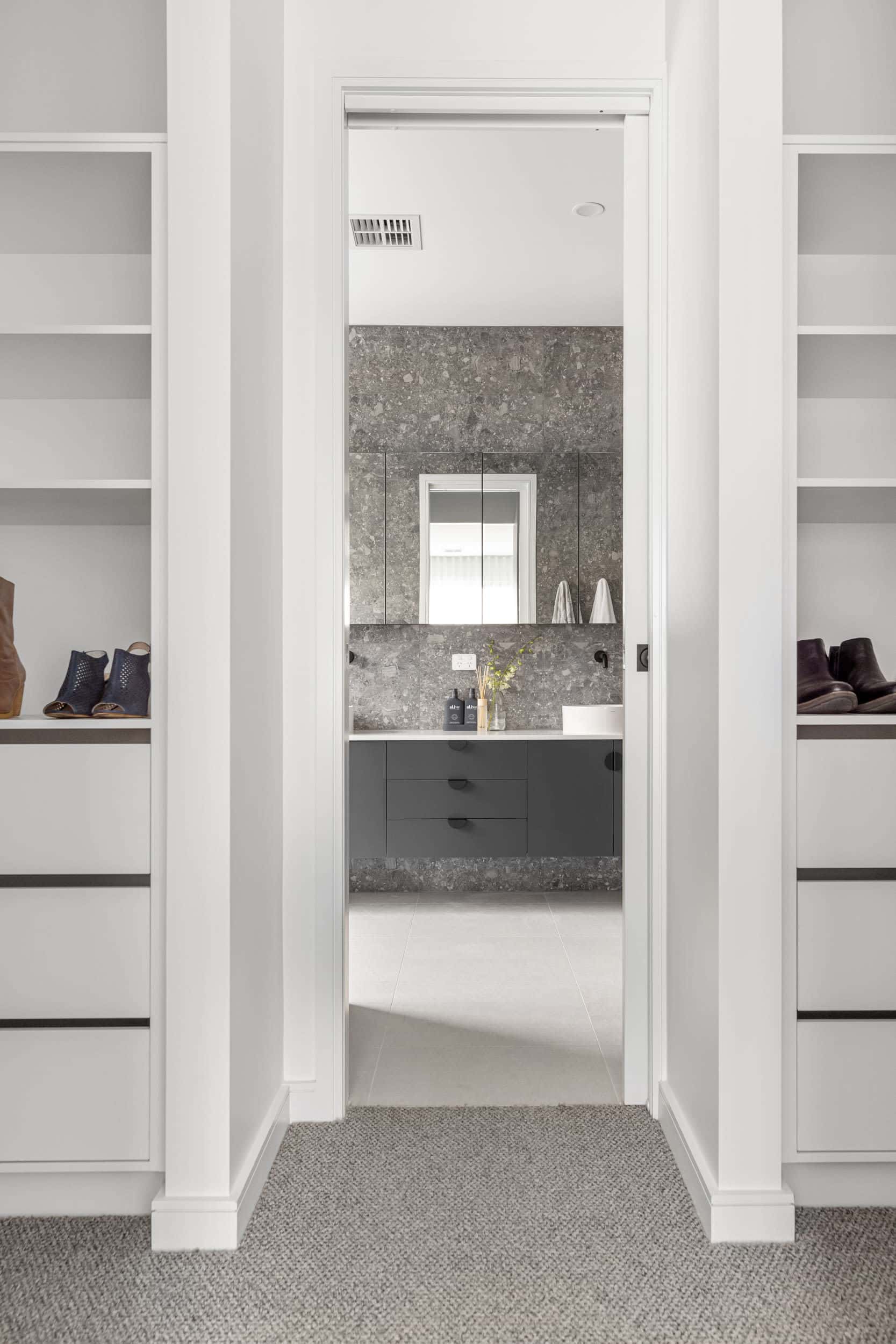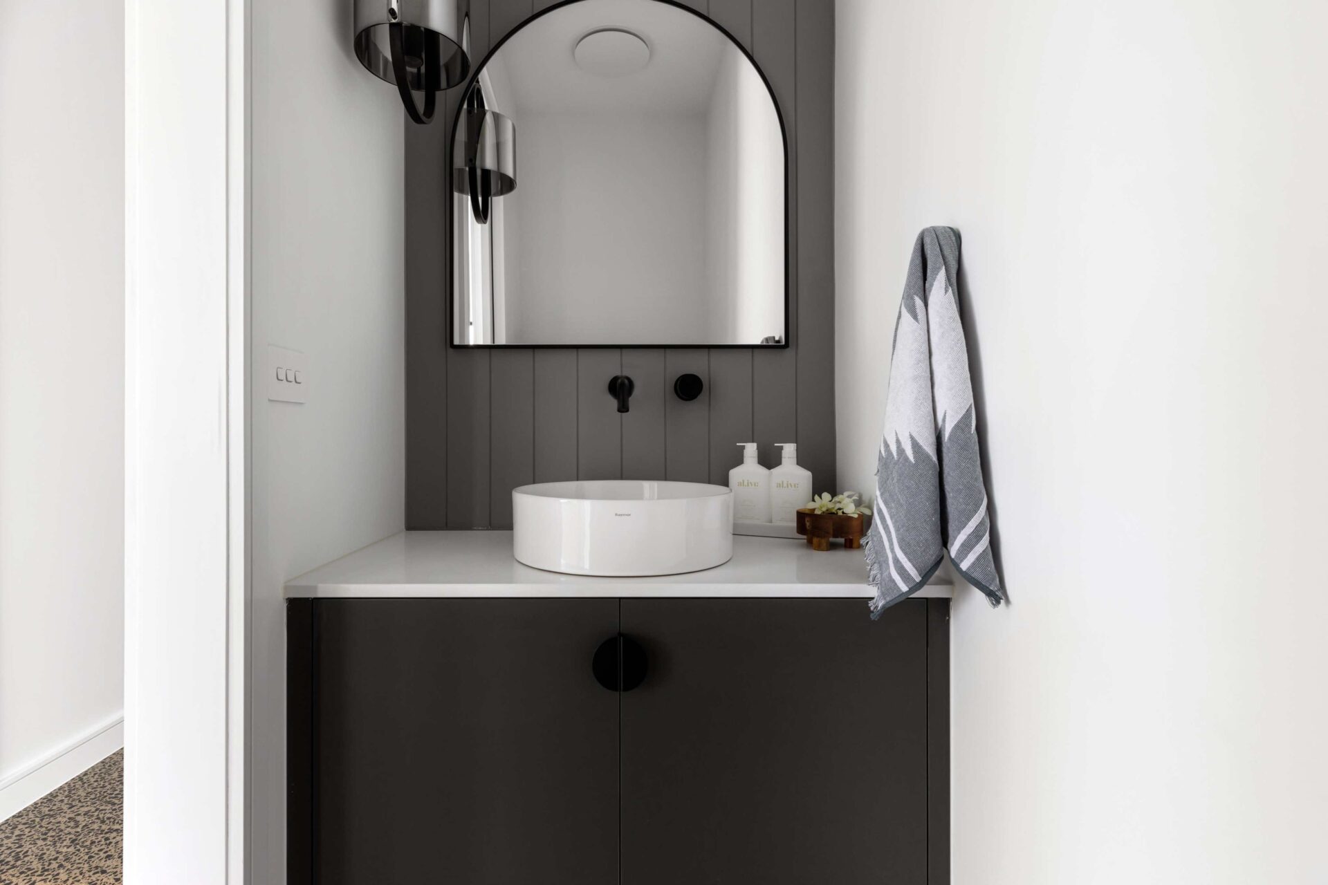 Our clever Havana clients never second-guessed their selections and were clear on their style from the beginning. They incorporated beautiful hues of grey and beige with some darker features throughout, including black tapware, a textured feature wall for the master bedroom and VJ panelling splashback to the powder room. Feature lighting starred as a hero in the design along with the impressive Taurus fireplace from Vision Line Australia.