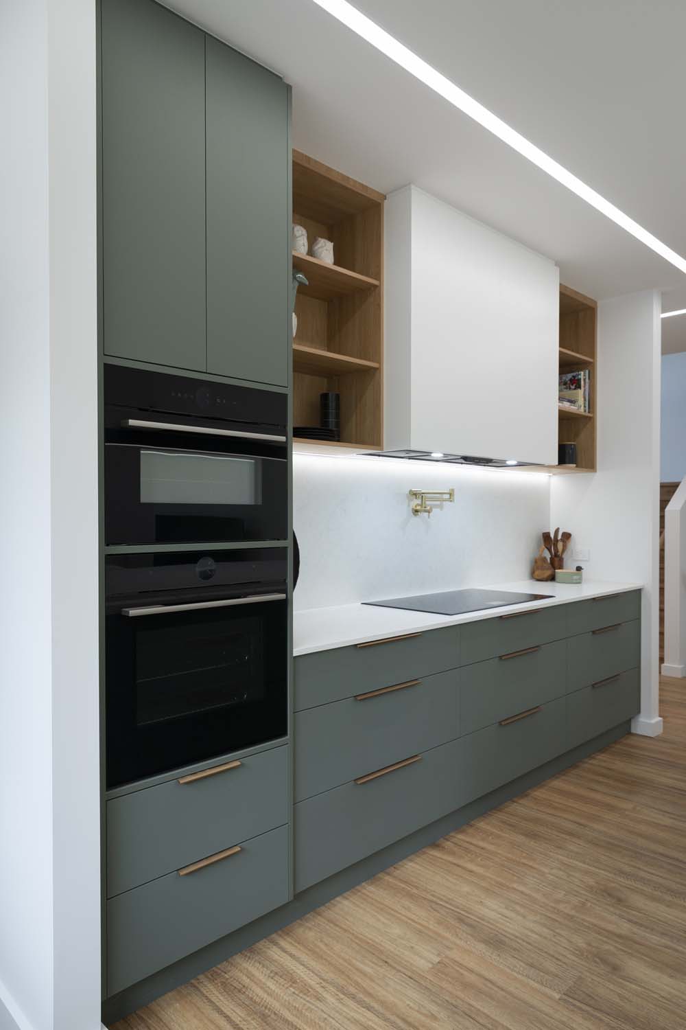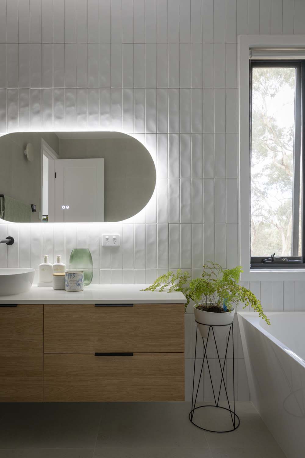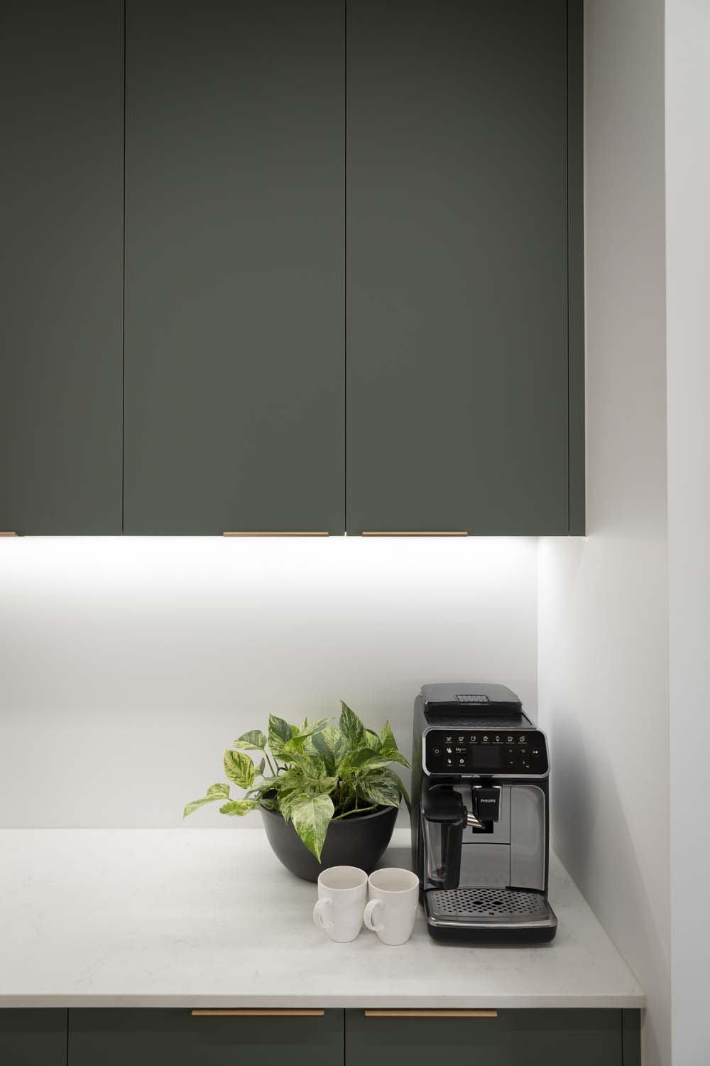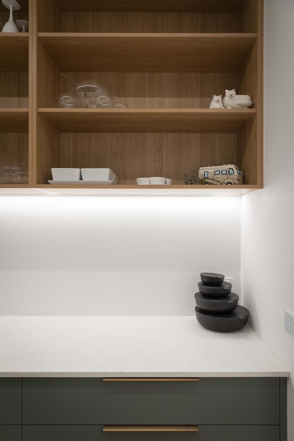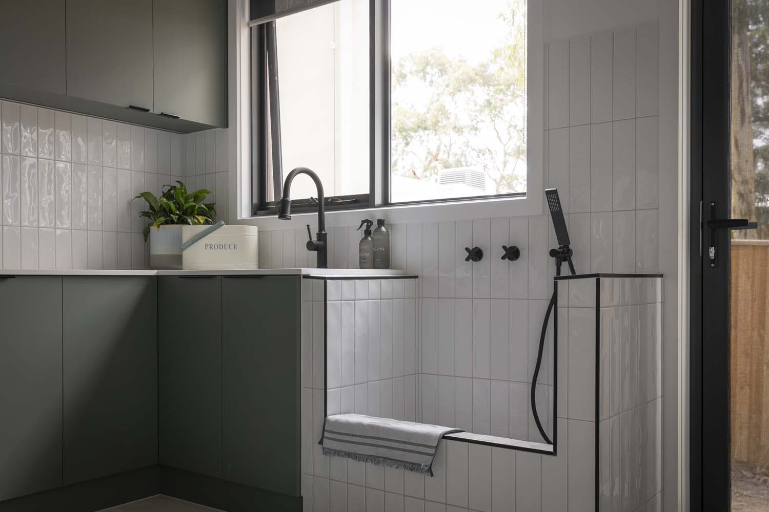 Material selections were made with longevity and elegance in mind. Neutral tones dominate the palette, ensuring the spaces remain fresh and contemporary for years to come, while the kitchen features a striking sage green—a nod to current trends and a touch of personality unique to this build. The master suite is positioned at the rear, overlooking a serene reserve, and offers seamless integration between bedroom and ensuite for privacy and practicality. The dedicated home office, complete with a temperature-controlled equipment storeroom, reflects a commitment to both productivity and aesthetic cohesion, making this residence a showcase of thoughtful, enduring design.